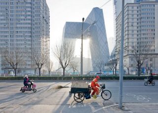 Пекиннинг Фуцзин кўчаси жойлашган Хитой Марказий Телевиденияси. Баланд бинода жойлашган телевидениега кирар экансиз ҳайратингиз ошмай қолмайди.